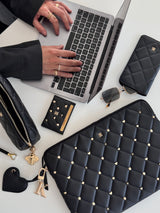 Leather Quilted Card Holder W/Sign Studs