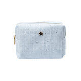 VELVET SQUARE QUILTED MAKE-UP POUCH LARGE GRISALLE BLUE